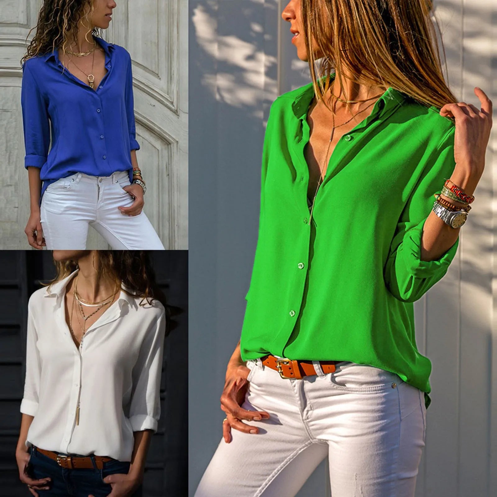 Womens Ladies Chiffon Long Sleeve OL Shirt Casual Loose Tops Blouse