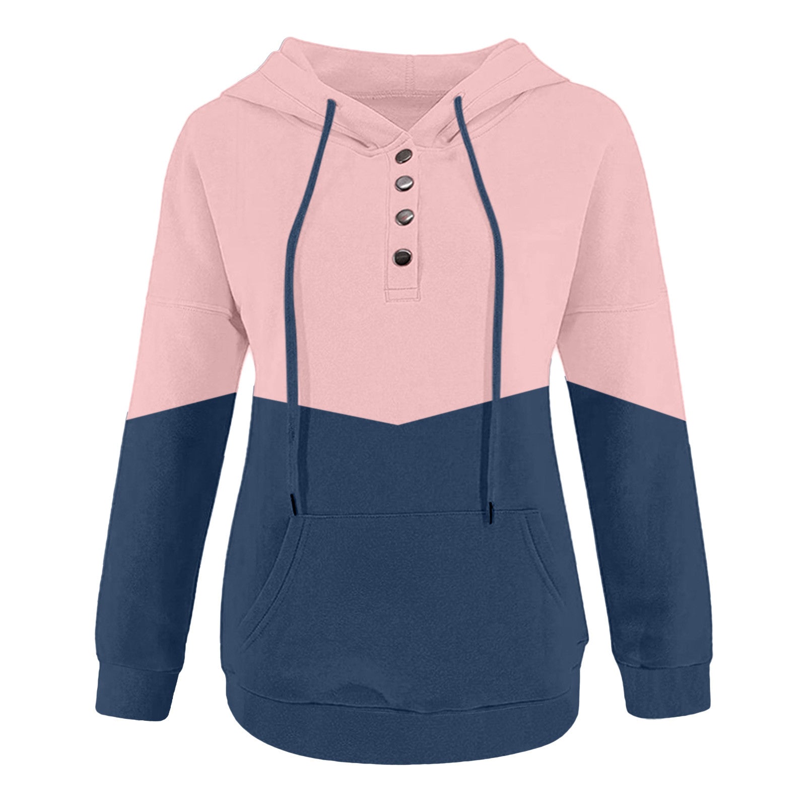 Women's Pullover Hoodies Tops Button Down Long Sleeve Sweatshirts With Pocket