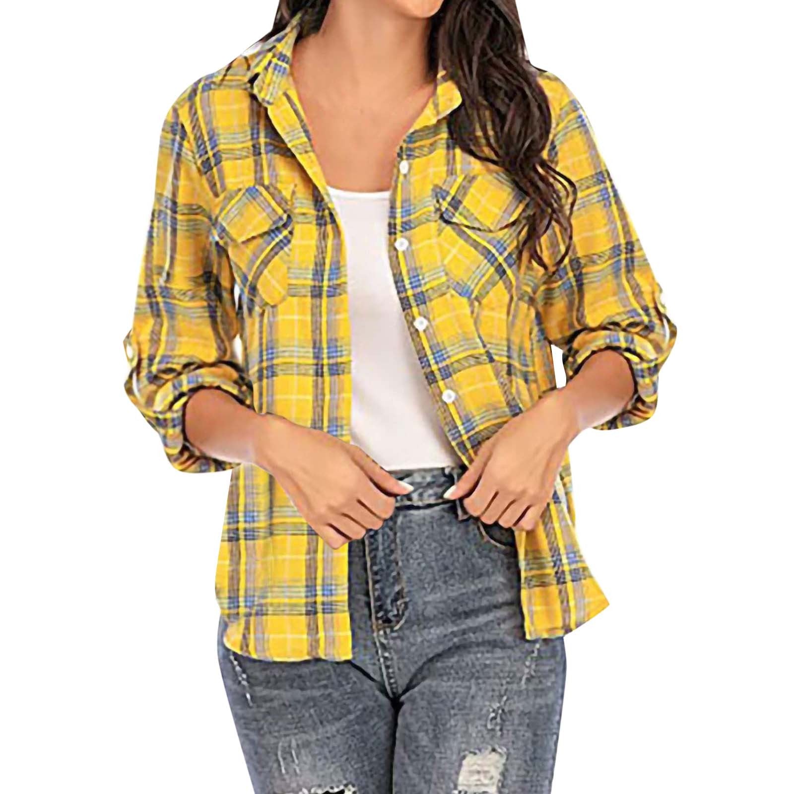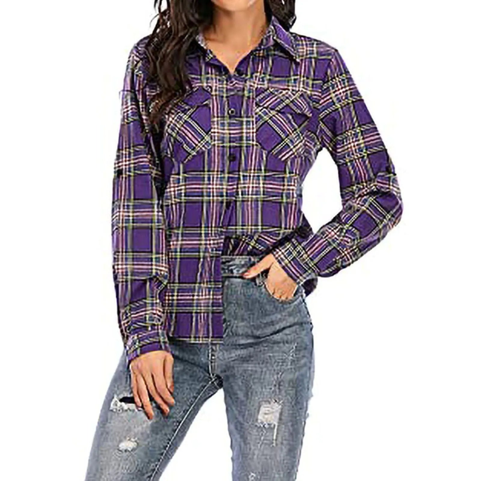 • Comfort and Stylish: plaid shirts for women with turn down collar, button down thick material blouse, a tartan pattern womens tops and blouses